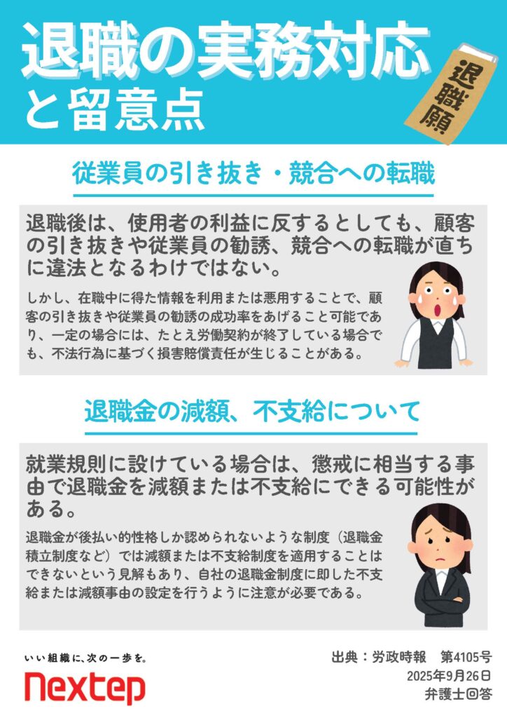 退職後に顧客の引き抜きや従業員の勧誘、競合への転職をすること自体は直ちに違法ではない。