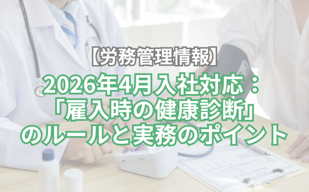 【労務管理情報】2026年4月入社対応:「雇入時の健康診断」のルールと実務のポイント