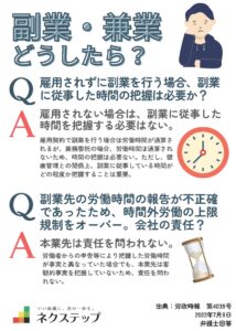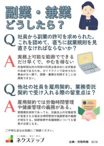 副業・兼業における労働時間管理の考え方 雇用されない副業(業務委託など)の場合 副業で「雇用契約」がないときは、労働時間を把握する必要はない。ただし、健康管理の観点から、どの程度副業を行っているかを把握しておくことは重要 […]