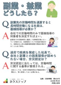 副業・兼業と労働時間・健康管理の考え方 副業先の労働時間を通算すると長時間労働になる場合でも、面接指導の対象は自社の労働時間をもとに判断します。ただし、安全配慮や健康確保の観点から、副業分も含めて状況を把握し、必要に応じ […]