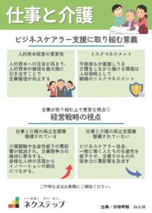 介護を担う「ビジネスケアラー」への支援は、企業の人材戦略に直結します。両立支援策を整備することで、生産性低下や離職を防ぎ、競争力の維持や多様な人材の活躍促進につながります。一方、支援が不十分だと組織全体のパフォーマンスや […]